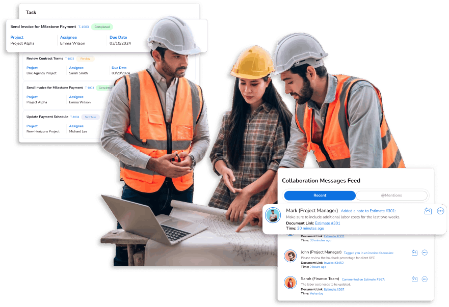 Bill Easy helps contractors, builders, and project owners manage every aspect of a construction project from one platform. Designed to unite teams across every project phase, our construction project management software tracks progress, assigns tasks, and monitors budget while keeping projects on schedule.